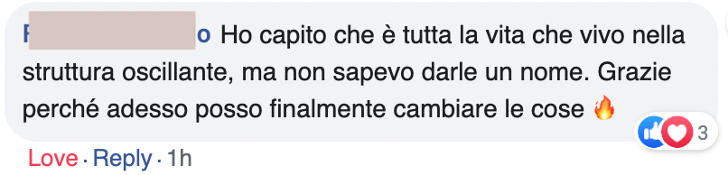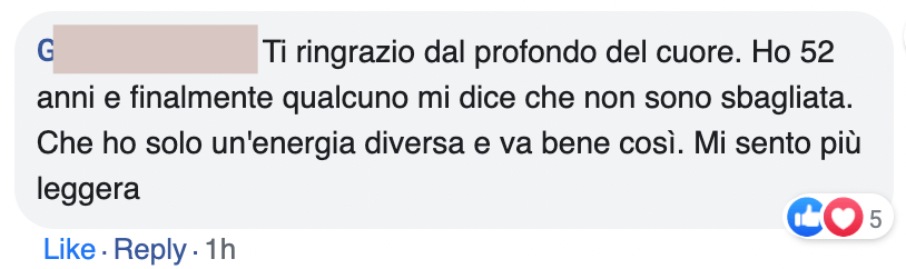Sono passata dal sentirmi sbagliata con chiunque e in ogni situazione, a conoscermi e amarmi nel profondo, così posso scegliere ciò che è in allineamento con me, perdendo meno tempo e meno energie con persone e contesti sbagliati.